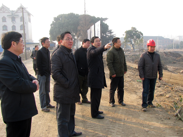 本站訊,1126,公司新近中標的新溝河延伸拓浚江邊樞紐工程在簽訂合同當日即組織人員進場。20多天來,項目部搭設了臨時辦公點,著手展開船閘基坑土方開挖、臨時變壓器安裝、拌和樓基礎施工、現場房屋搭設等施工前期工作。省水利廳黨組成員、省水利工程建設局局長朱海生省太湖治理工程建設管理局黃良勇局長等領導多次到現場指導工作,與我公司總經理夏國春、副總經理、總工程師翟高明共同籌劃落實各項趕工措施。