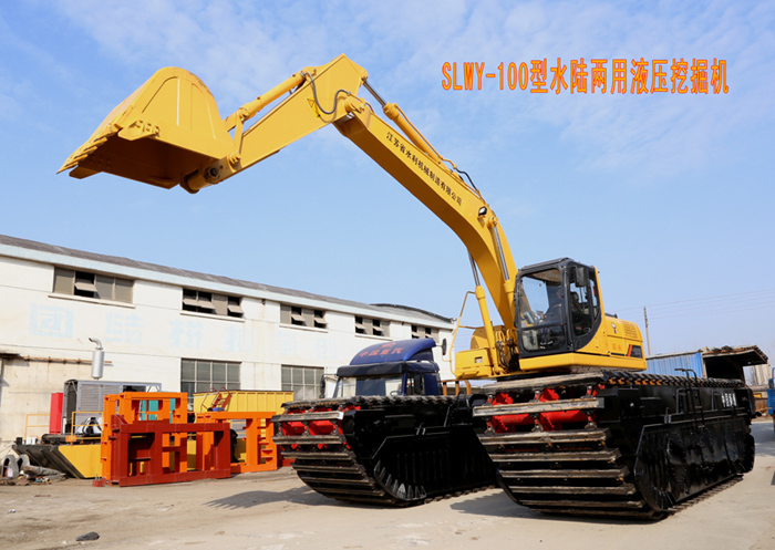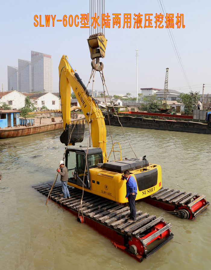 5月8日上午10時,水機公司最新研制的SLQY—60C型水陸兩用液壓挖掘機在公司專用碼頭完成了水中航行、平衡試驗、挖泥測試后被緩緩吊出水面,碼頭上鞭炮齊鳴,產品研發人員、安裝工人歡聲雷動,祝賀公司二0一四年第二個新產品制造成功。新型水陸兩用液壓挖掘機采用進口發動機和液壓驅動系統,臂長達11.5米,與同類機型相比具有水陸兩用性能可靠、挖掘半徑大、功效高、驅動力大、維修方便等特點,是河道開挖、工地施工的首選機型。