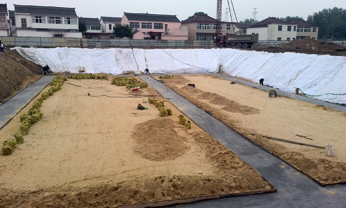 沉井砂墊層鋪筑完