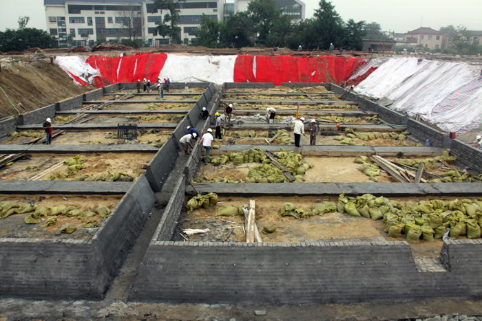 工程自518日開工建設以來,經過項目部員工的不懈努力,已完成止水帷幕旋噴樁20658.4m,沉井砂墊層1300m3、混凝土澆筑0.18、鋼筋制安380噸。