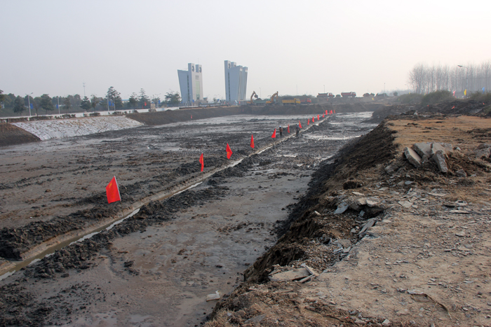 泰州引江河第二期工程是江蘇省重點水利工程,2012年12月18日舉行了開工動員會。我公司承建的船閘工程自開工后就進入了緊張的臨時設施籌建和土方施工中。項目部員工利用現有條件,邊籌建臨時設施,邊進行土方開挖和上下游河道清理。目前已完成土方開挖