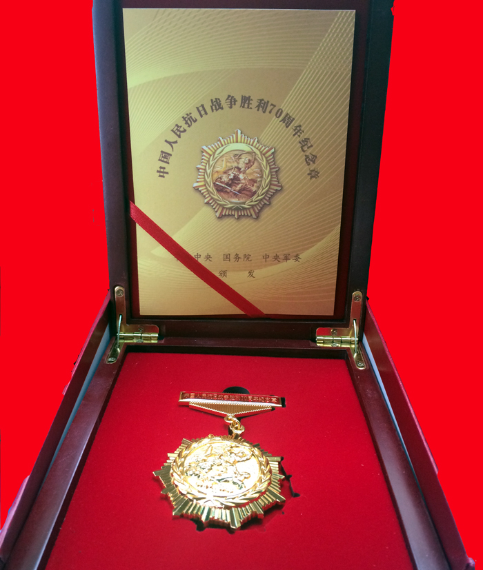 在全國人民慶祝中國人民抗日戰(zhàn)爭勝利70周年之際,公司5名抗戰(zhàn)老兵喜獲中共中央、國務院、中央軍委頒發(fā)的“中國人民抗日戰(zhàn)爭勝利70周年紀念章”。