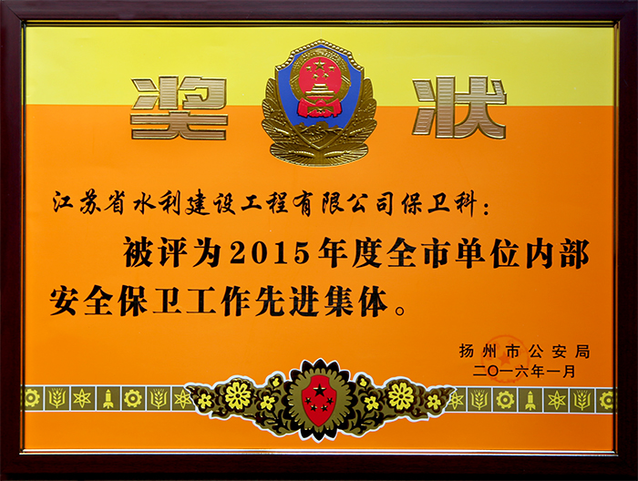 近日,公司綜合管理部的安全保衛(wèi)工作得到了地方公安部門的肯定和贊揚,被揚州市公安局評為“2015年度全市單位內(nèi)部安全保衛(wèi)工作先進集體”。