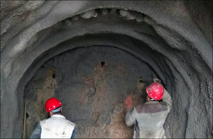 艱難的籌建工作完成后,3月20日開始施工導流隧洞。隧洞全長 461 m,斷面型式為1.5 m×1.8 m(寬×高)的城門洞型,35cm厚混凝土內襯。該段隧洞是水庫壩體施工前的導流工程,對主體工程施工進度影響較大。項目部從導流隧洞進出口雙向同步施工,經過75天的日夜奮戰,于6月2日順利貫通。