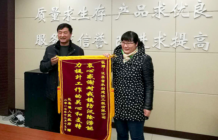 12月15日,2017年廣陵區(qū)農(nóng)田水利重點(diǎn)縣工程Ⅱ標(biāo)通過了完工驗(yàn)收。驗(yàn)收會(huì)上,杭集水利站王站長(zhǎng)代表杭集鎮(zhèn)人民政府授予我單位錦旗,衷心感謝公司在農(nóng)水重點(diǎn)縣工程上作出的貢獻(xiàn),以及對(duì)杭集防汛除澇能力提升工作的關(guān)心與支持。