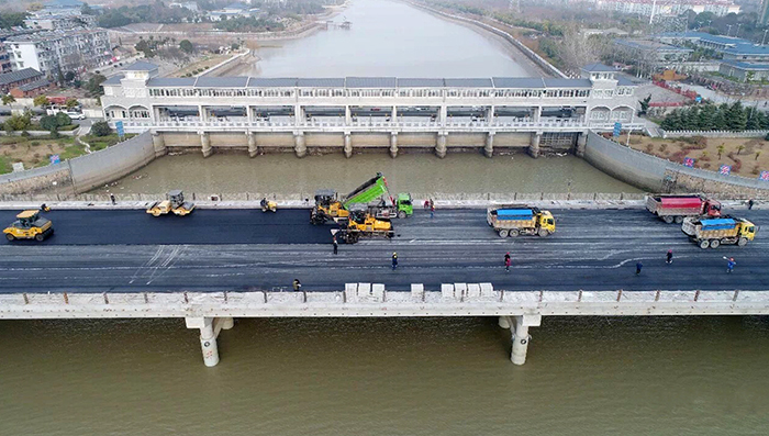 自揚(yáng)州市氣象局發(fā)布暴雪天氣預(yù)報后,從1月22日開始,項目部組織人員加班加點(diǎn)施工,組織數(shù)臺瀝青攤鋪機(jī)進(jìn)行南北接線及主橋面的瀝青攤鋪,確保了瀝青攤鋪工序按計劃完成。
