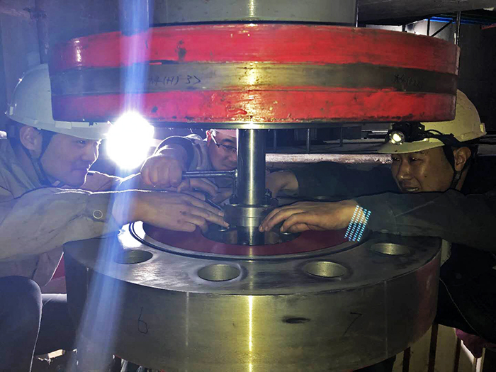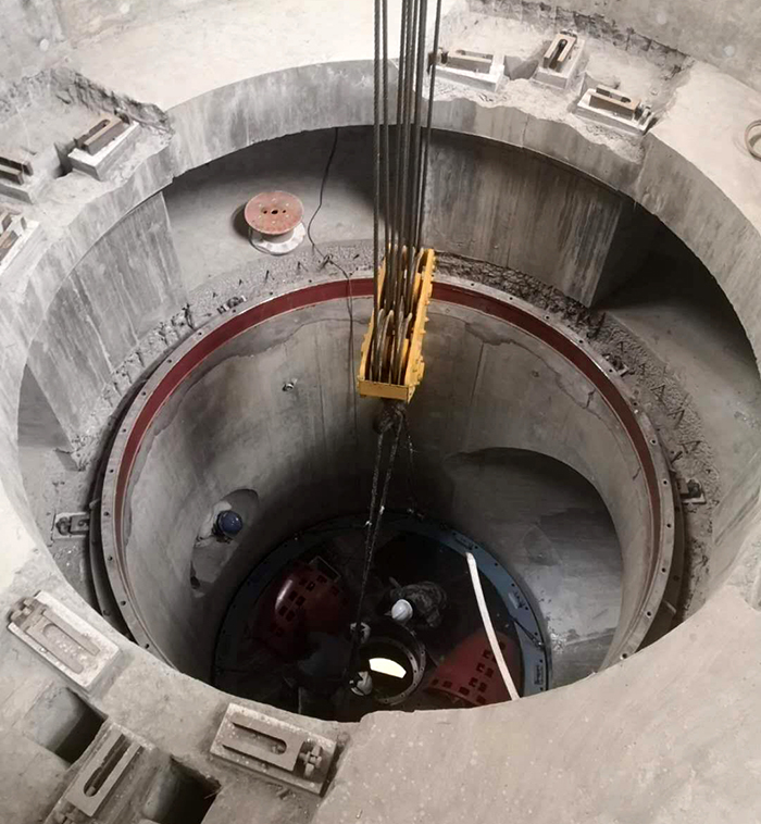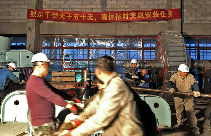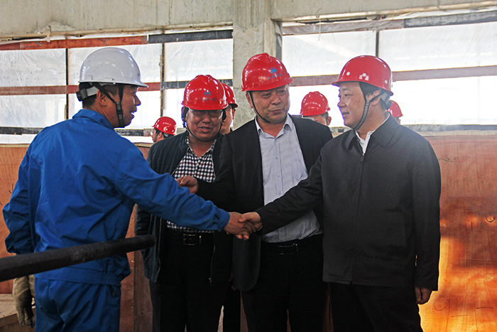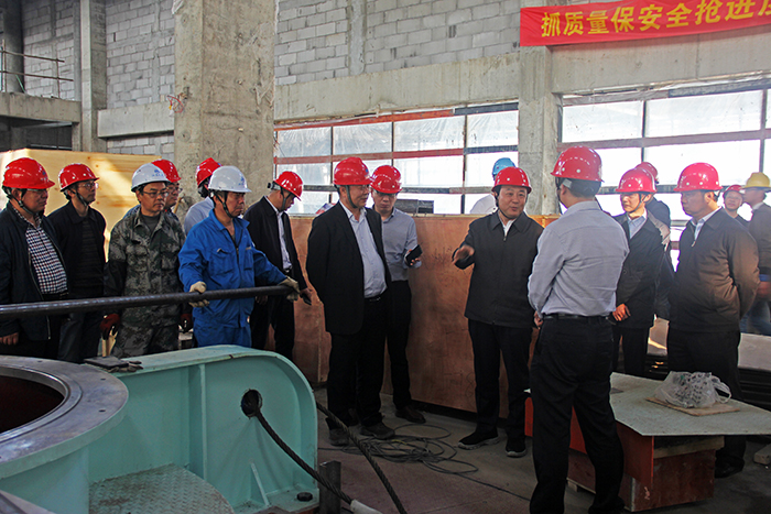 謝正義首先察看了泵站主廠房、機電安裝作業現場,他說,我曾經在腦海中想象工程的規模,但沒想到現場是如此壯觀雄偉。在正在進行的3號機組盤車現場,謝書記與機安分公司黨支部書記王建平等同志親切握手,向現場加班的工人師傅們表示感謝和慰問。謝書記向安裝負責人陸建江同志了解盤車工序的過程和目的,當時愛祥同志介紹機工老師傅陳庭霞同志,并介紹大師在安裝時通過聽、看、摸、測等手段發現問題解決問題時,謝書記夸贊:不得了,真厲害。