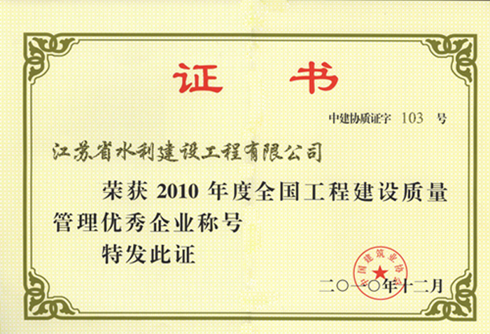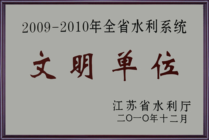 公司連續(xù)多年被評(píng)為全國(guó)水利建設(shè)先進(jìn)集體、全國(guó)優(yōu)秀水利企業(yè)、全國(guó)安全生產(chǎn)和質(zhì)量管理先進(jìn)單位、江蘇省文明單位、建筑業(yè)百?gòu)?qiáng)企業(yè),榮獲江蘇省“五一勞動(dòng)獎(jiǎng)?wù)?rdquo;。
