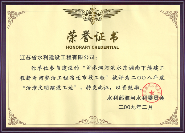 公司連續(xù)多年被評(píng)為全國(guó)水利建設(shè)先進(jìn)集體、全國(guó)優(yōu)秀水利企業(yè)、全國(guó)安全生產(chǎn)和質(zhì)量管理先進(jìn)單位、江蘇省文明單位、建筑業(yè)百?gòu)?qiáng)企業(yè),榮獲江蘇省“五一勞動(dòng)獎(jiǎng)?wù)?rdquo;。