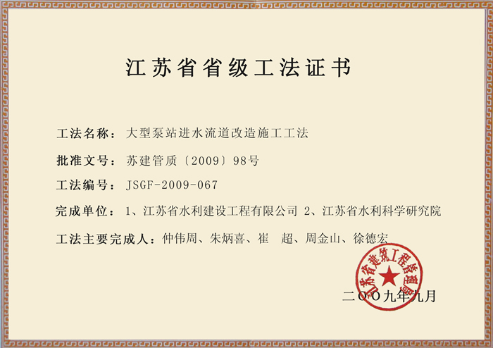 公司實(shí)施科技興企戰(zhàn)略,建立完善科技創(chuàng)新體系,形成了一批具有自主知識(shí)產(chǎn)權(quán)的科技成果或工法。公司成立了國(guó)內(nèi)水利系統(tǒng)首家企業(yè)院士工作站,兩次承擔(dān)修編了江蘇水利工程定額,1項(xiàng)工程獲中國(guó)土木工程詹天佑獎(jiǎng);6項(xiàng)科技成果獲大禹水利科學(xué)技術(shù)獎(jiǎng)、江蘇省政府科技進(jìn)步獎(jiǎng)和江蘇水利科技成果獎(jiǎng);實(shí)施了4項(xiàng)省水利科技重點(diǎn)項(xiàng)目;完成了國(guó)家級(jí)工法1項(xiàng),省級(jí)工法4項(xiàng);獲得國(guó)家實(shí)用新型專利15項(xiàng);13個(gè)QC成果獲國(guó)家優(yōu)秀質(zhì)量管理獎(jiǎng)。