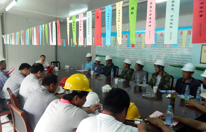 2013年6月14日上午,總經(jīng)理夏國(guó)春、工會(huì)主席姜啟生、紀(jì)委書記黃祥圣等公司安委會(huì)成員來(lái)到機(jī)械化分公司入江水道運(yùn)河西堤六標(biāo)項(xiàng)目部,開展安全宣傳周活動(dòng)。活動(dòng)現(xiàn)場(chǎng),機(jī)械化分公司經(jīng)理吳寶華、項(xiàng)目經(jīng)理韓愛(ài)東分別介紹了分公司及項(xiàng)目部開展安全生產(chǎn)月活動(dòng)情況。工會(huì)主席姜啟生要求項(xiàng)目部切實(shí)有效地開展安全月活動(dòng),加強(qiáng)勞動(dòng)保護(hù),落實(shí)好防暑降溫和高溫安全生產(chǎn)措施。夏國(guó)春總經(jīng)理傳達(dá)了習(xí)近平總書記6月6日對(duì)安全生產(chǎn)工作的重要指示,6月7日國(guó)務(wù)院召開的全國(guó)安全生產(chǎn)電視電話會(huì)議精神,傳達(dá)了近期省、市安全生產(chǎn)會(huì)議精神,通報(bào)了安全生產(chǎn)形勢(shì)。夏國(guó)春對(duì)加強(qiáng)公司安全生產(chǎn)工作、全面開展安全生產(chǎn)大檢查、抓好在手工程建設(shè)、廣泛深入開展安全生產(chǎn)月活動(dòng)提出了具體要求。他要求公司上下要時(shí)刻崩緊安全生產(chǎn)這根弦,做到安全檢查全覆蓋、隱患治理不留情;公司各分公司、各個(gè)生產(chǎn)項(xiàng)目部要在思想上高度重視,措施嚴(yán)格落實(shí),加強(qiáng)夏季高溫作業(yè)安全、防汛防臺(tái)生產(chǎn)安全,全面細(xì)致、深入有效地抓好安全生產(chǎn)工作。會(huì)后,公司安委會(huì)成員沿著運(yùn)河大堤,步行5公里,仔細(xì)檢查了施工現(xiàn)場(chǎng)。