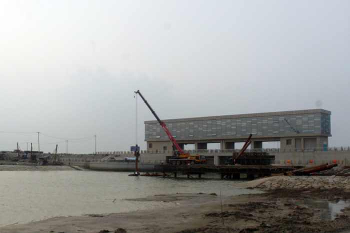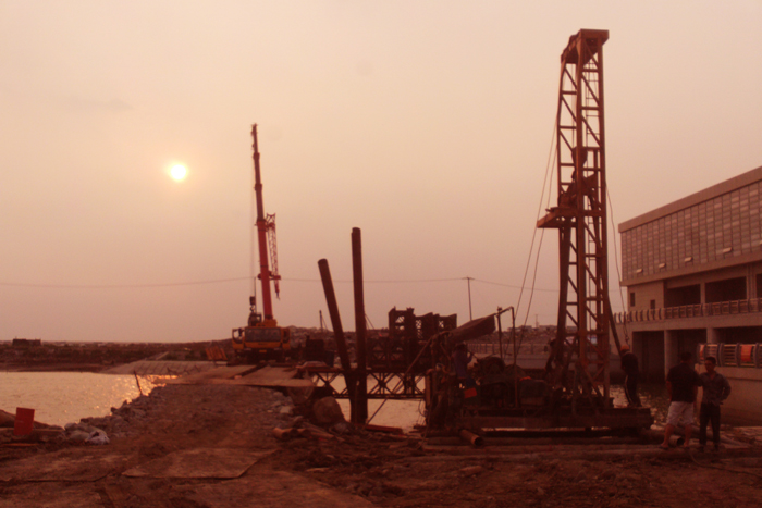 一邊是如火如荼的建設工地,另一邊是遼闊平靜的海面。驕陽下江蘇水建人正默默地工作,向著目標堅定前進……