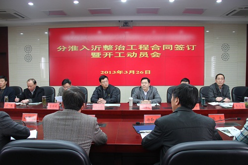 3月26日下午,分淮入沂整治工程合同簽訂暨開工動員會議在宿遷市召開。省水利工程建設(shè)局局長朱海生出席會議并講話。會議就工程建設(shè)做了全面動員部署,要求各有關(guān)部門和單位進一步統(tǒng)一思想、明確任務(wù)、落實責(zé)任、團結(jié)協(xié)作,高標(biāo)準、高質(zhì)量地推進工程建設(shè)。
