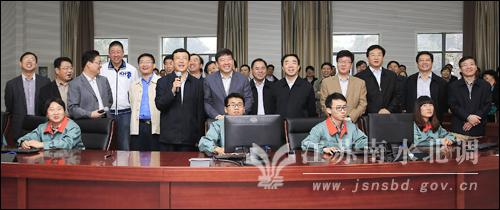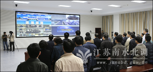 與會代表在南水北調工程應急調度中心了解了各個泵站準備情況,試運行開始后查看了南水北調江都四站工程運行情況。