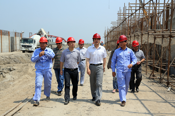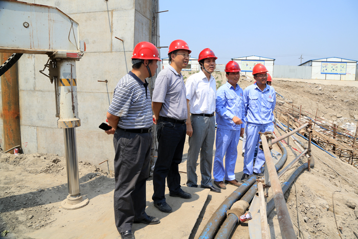 7月31日,朱學(xué)林董事長(zhǎng)來(lái)到引江河二線船閘工地,親切慰問(wèn)奮戰(zhàn)在高溫下的一線員工。