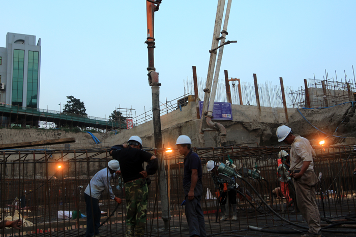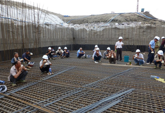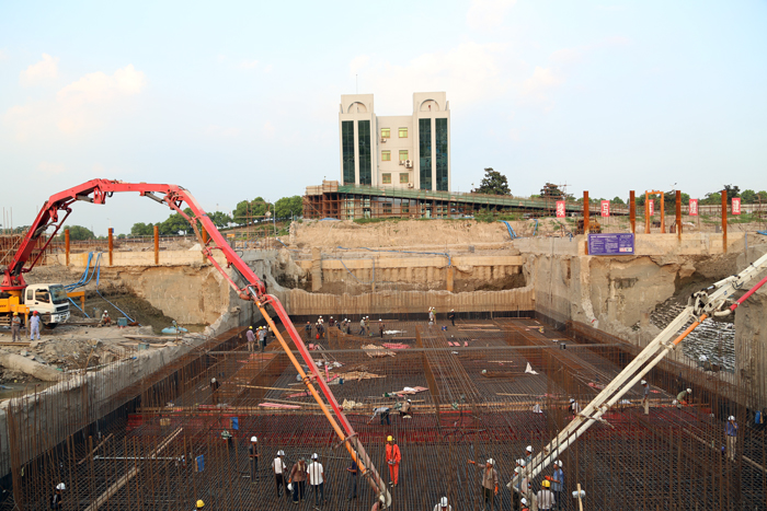 目前,底板澆筑正在緊張有序地進(jìn)行中。