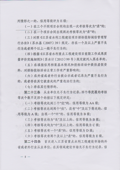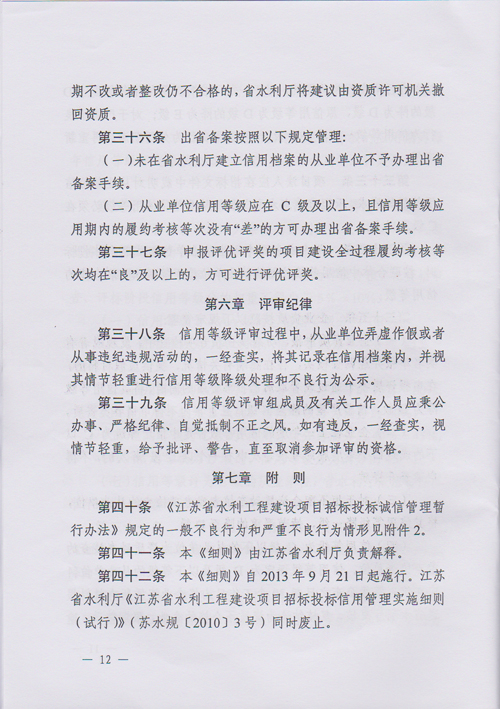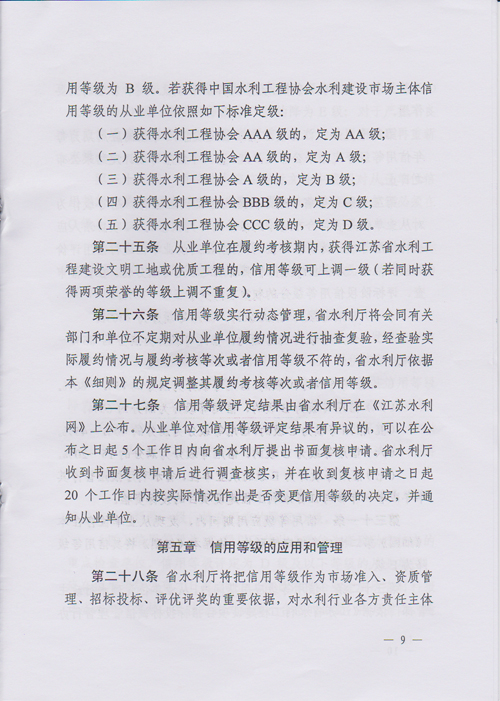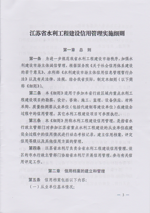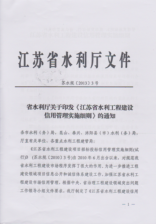日,省水利廳發布了《江蘇省水利工程建設信用管理實施細則》(蘇水規