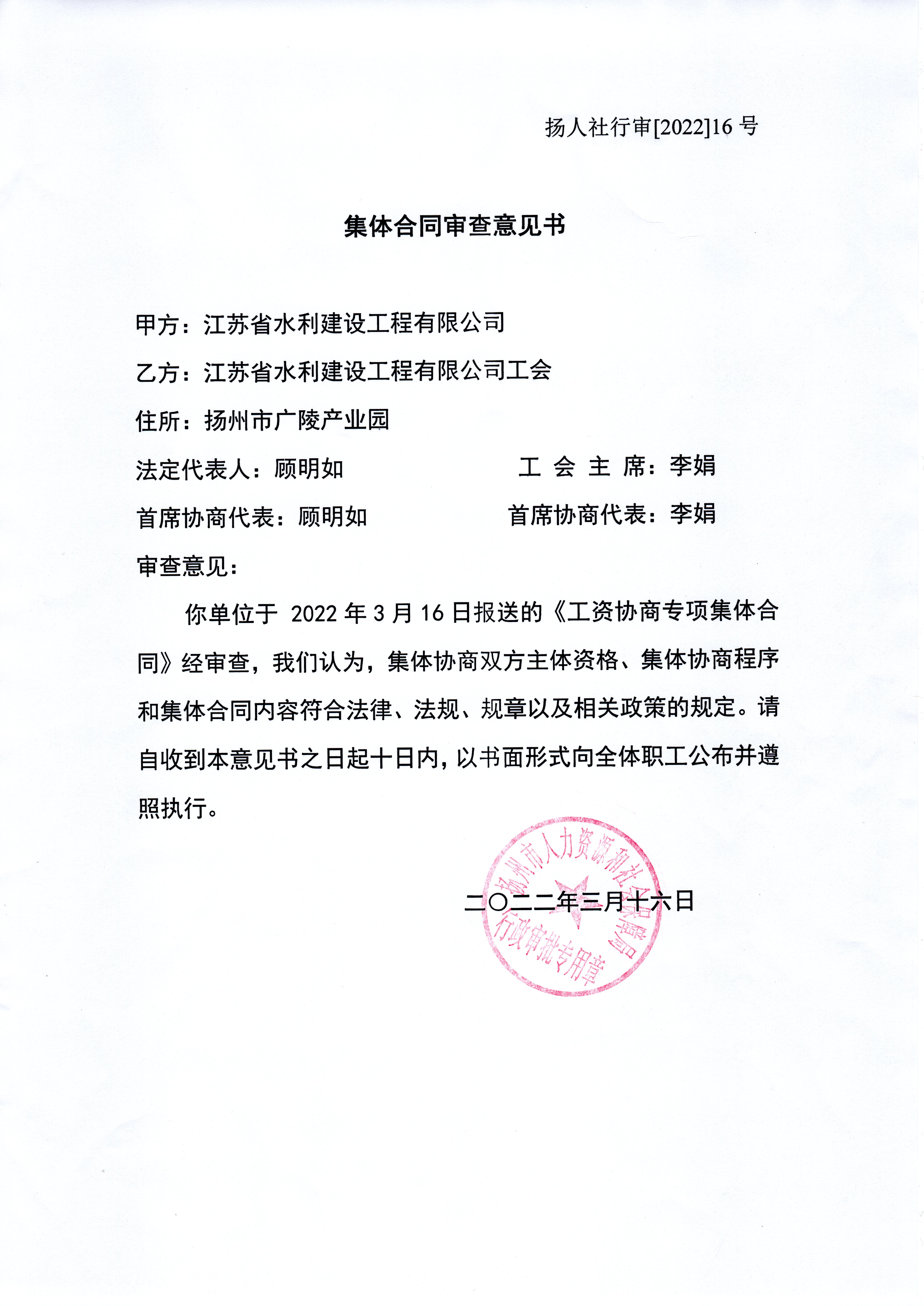集體合同審查意見書