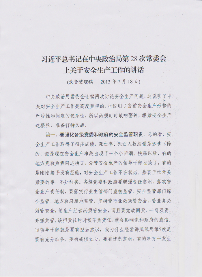習近平總書記關于安全生產工作的講話