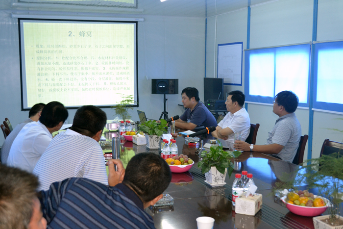 會上,分公司各在建工程項目經理對工程的進展、質量情況作了匯報;其后,大家交流了各自的具體做法和施工工藝,重點結合引江河二期工程河道工程的特點,對混凝土、土方施工中可能產生的質量通病及預防措施進行了交流。會上,吳寶華經理、李志書書記針對各工程項目的進度和質量問題,提出了解決措施和具體工作要求。