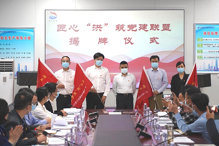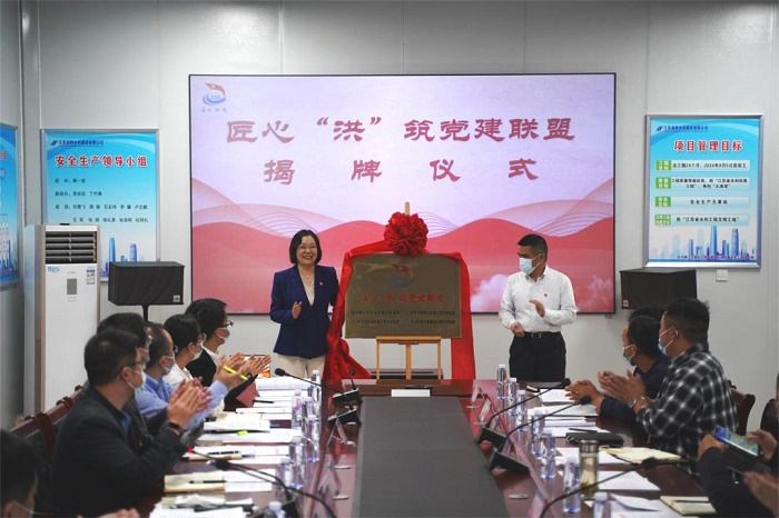 10月25日,張家港市水務局“匠心洪筑”黨建聯盟揭牌,十一圩江邊樞紐改建工程項目行動支部正式成立。