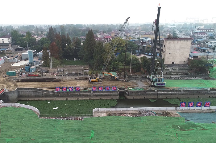 通江閘樞紐位于江都區(qū)嘶馬鎮(zhèn)紅旗河南段,為紅旗河與長(zhǎng)江之間的控制口門,是一座集擋洪、排澇、引水、通航(兼顧)等功能于一體的綜合利用型套閘。本次改造原址拆建通江閘、西泵站、345國(guó)道嘶馬閘橋等。工程于2022年9月30日開工,目前已完成上下游圍堰的填筑、通江閘上部結(jié)構(gòu)及嘶馬閘橋的拆除以及部分基坑支護(hù)工程,計(jì)劃2023年5月31日閘站部分具備通水驗(yàn)收條件,2023年12月31日具備完工驗(yàn)收條件。