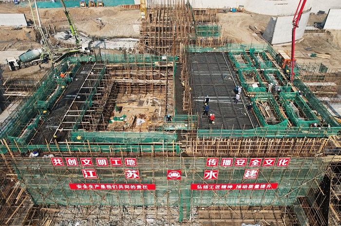 十一圩江邊樞紐改建工程順利完成泵站工作層澆筑