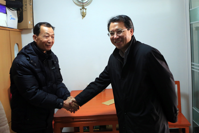 韓全林一行在夏國春總經理的陪同下,來到公司退休老領導朱道洪和省勞模丁開德家中,詳細了解他們的生活和身體情況,對老勞模、老同志為江蘇水利作出的貢獻表示感謝。他叮囑老同志們要注意保健,加強鍛煉,平和樂觀地安度晚年。