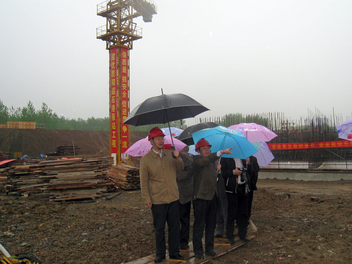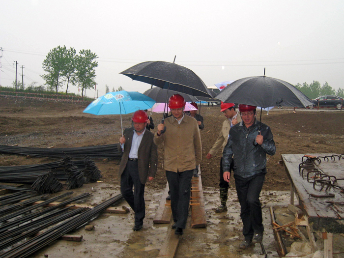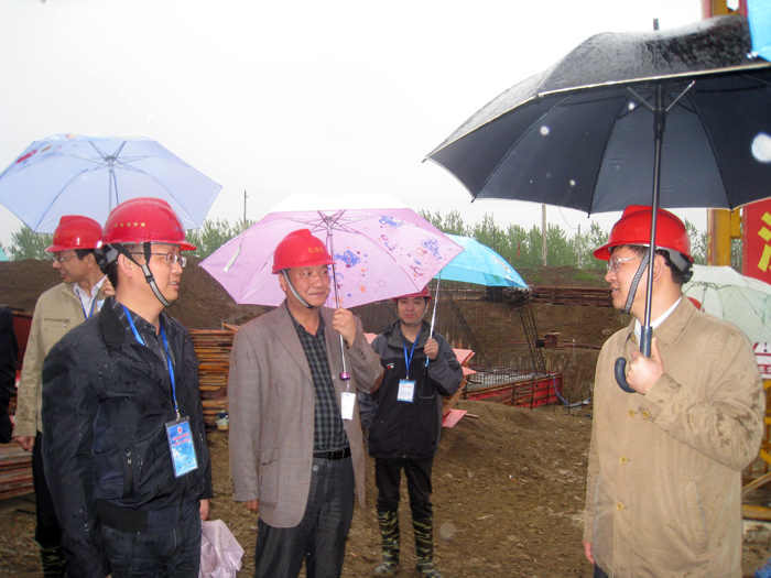 411下午,省水利廳李亞平廳長冒雨來到我公司金湖石港泵站工程工地檢查指導工程建設。我公司夏國春董事長、副總經理、石港泵站工程項目經理楊斌同志陪同檢查。