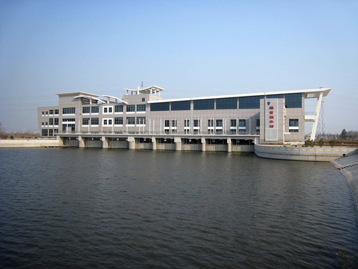 泵站設計流量125 m3/s,設計揚程5.84m,安裝5臺套2900ZLQ32-6型立式軸流泵(含備機1臺),水泵葉輪直徑2900mm,配TL2800-40/3250型同步電動機,單機設計流量31.5 m3/s,單機功率2800kW,總裝機容量14000kW