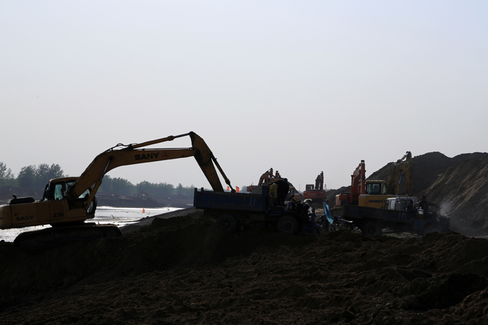 55,項目部僅用40天就完成了河道土方開挖,比主業要求的工期提前近1個月。同時,本標段也是同時實施的3個標段中速度最快、質量最好的一個標段。5日下午,睢寧縣委書記王軍來到我公司工程施工現場,對項目的進度和質量給予了高度贊揚。