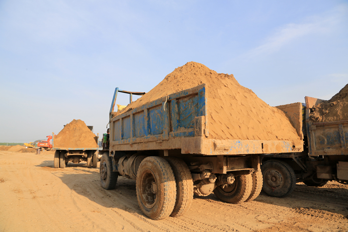 145萬方土,在過去肩挑手扛的年代,需要一年時間;在現在的機械化作業情況下,至少需要100天。而業主給項目部的時間僅為60天,幾乎是不可能完成的任務。公司的鐵軍精神再次被發揮到極致。項目部將工程分為5個施工區,組織了60臺挖掘機、15臺推土機、11臺裝載機、140臺運輸車晝夜不停地展開施工。項目部采取加班加點、班組競賽、獎快罰慢、快者多干等激勵手段,加快工程進展。工程高峰期日開挖土方達6萬方,創下了我公司土方施工的新紀錄。