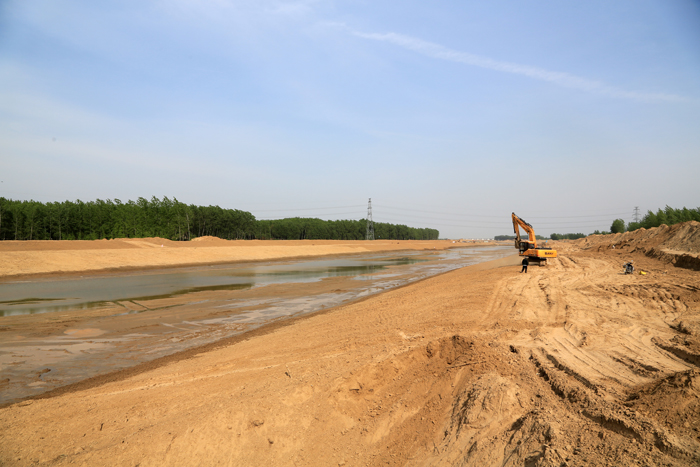 目前工程正進行河道上部土方修整和橋梁等建筑物的施工,預計可于10月底前完成全部施工任務。
