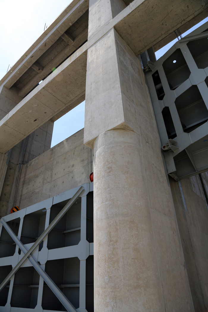 工程于20131018開始導流河開挖,至2014年4月29日完成墻后回填土施工,具備水下工程驗收條件。共完成土方挖填18m³、混凝土澆筑1.2m³、鋼筋制安690噸、鋼結構制安176.4噸、拋石防沖槽900m³、砂石墊層2420m³。