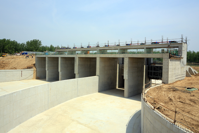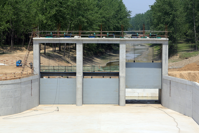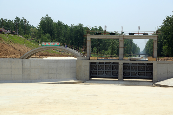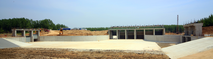 分淮入沂整治工程是國務院確定的進一步治理淮河重點項目。該工程自二河閘起,沿線經淮安市清浦、淮陰區和宿遷市泗陽、沭陽縣,至沭陽西關與新沂河交匯,全長97.5千米,設計泄洪能力3000立方米每秒,是淮河下游防洪體系的一個重要組成部分,是洪澤湖的排洪通道之一,亦是淮河流域與沂沭泗流域洪水相互調度、綜合利用的一項多功能工程,與入海水道、入江水道、蘇北灌溉總渠、廢黃河等工程聯合運用,排泄淮河上中游來水,為淮河流域及洪澤湖大堤的防洪安全提供保障,具有較好的社會、經濟綜合效益。我公司承建了淮柴河閘樞紐的淮柴河閘、劉柴河南閘、劉柴河北閘拆建工程,中標價2298萬元。工程于2013年10月開工,2014年5月初完成主體土建工程施工及閘門、啟閉機安裝,具備水下驗收條件。