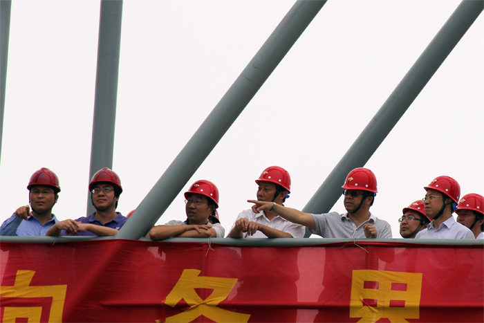 葉健一行實地查看了泰州引江河第二期工程河道工程和二線船閘工程施工現場,詳細詢問了工程建設進展情況及施工過程中遇到的困難。在聽取省泰州引江河第二期工程建設局負責同志關于工程建設情況的匯報后,葉健指出,泰州引江河第二期工程戰(zhàn)線長、要求高、施工難度大、施工干擾多,工程自2012年12月開工建設以來,參建各方克服困難、嚴格要求、堅持“三創(chuàng)”,二線船閘已通過水下階段驗收,河道工程總體進展良好,并取得了一些榮譽,對此表示充分肯定。對下一階段工作,葉健提出明確要求:一要進一步理清下一階段工作思路,針對工程建設進展,研究不同時期不同難點、關鍵點,有重點地開展工作;二要進一步加強質量控制和管理,特別要加強河道工程排泥場圍堰質量的控制和管理,延續(xù)并探索好的施工方法和經驗;三要進一步加強科技創(chuàng)新課題研究,在工程建設過程中要加強創(chuàng)新,善于總結;四要進一步加強工期管理,協(xié)調相關矛盾,針對工程建設實際,及時調整工期安排,為順利實現工程建設目標打好基礎;五要加強安全管理,針對后續(xù)施工特點,加大巡查、整改力度,做到警鐘長鳴;六要加強工程投資控制,加強過程控制,重大設計變更需及時報批;七要加強組織協(xié)調,注重調動各方積極性;八要注重工程建設過程中的宣傳工作。葉健強調,參建各方要珍惜機遇、密切協(xié)作、加強管理,確保工程建設各項目標任務順利完成。