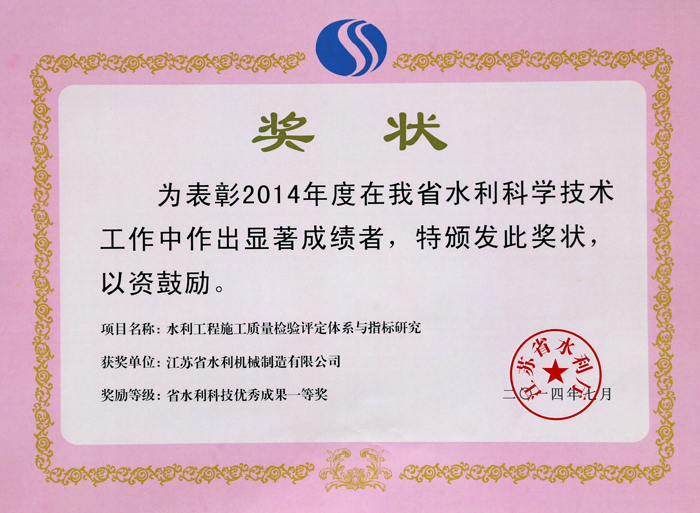 近期,公司和省水機(jī)公司參加的“水利工程施工質(zhì)量檢驗(yàn)評(píng)定體系與指標(biāo)研究”項(xiàng)目獲“省水利科技優(yōu)秀成果一等獎(jiǎng)”,公司機(jī)安分公司王杰良、省水機(jī)公司徐龍等同志分別參加了相關(guān)部分的研究和編制。