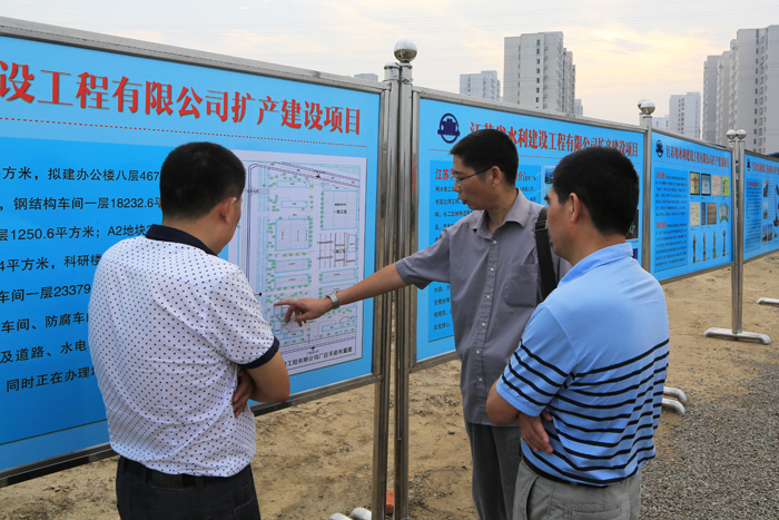 826下午,揚州市委書記謝正義來到我公司廣陵產業園新基地建設工地,調研項目建設情況。謝書記指出,公司要抓住水利大投入的機遇,加快擴產項目的建設,擴大水利機械設備產業規模,做大做強企業。
