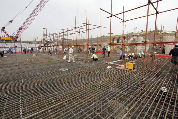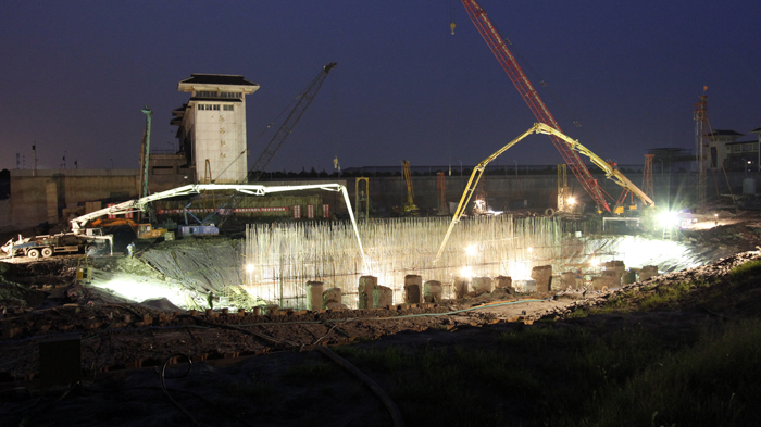 江蘇水建人的精神在此刻得到了充分的展示。項(xiàng)目部沒有絲毫氣餒,迎難而上。增加人員、設(shè)備資源投入,調(diào)整優(yōu)化現(xiàn)場作業(yè)方案,細(xì)排工期到每一天的每一個時點(diǎn)。大家成天成夜地泡在工地上組織施工作業(yè),無論是大雨如注,還是夜幕降臨,工地上總會見到他們的身影。老鋼筋隊(duì)長黃伯健同志,跟班指導(dǎo)工人綁扎鋼筋,連續(xù)幾天通宵作業(yè),3天就完成了160噸的鋼筋施工任務(wù),而黃伯健同志也累倒了。新來的幾個大學(xué)生,盡管剛剛走上工作崗位,但小伙子們肯學(xué)肯鉆肯吃苦,很快的適應(yīng)了高強(qiáng)度的工地生活,進(jìn)步很大。