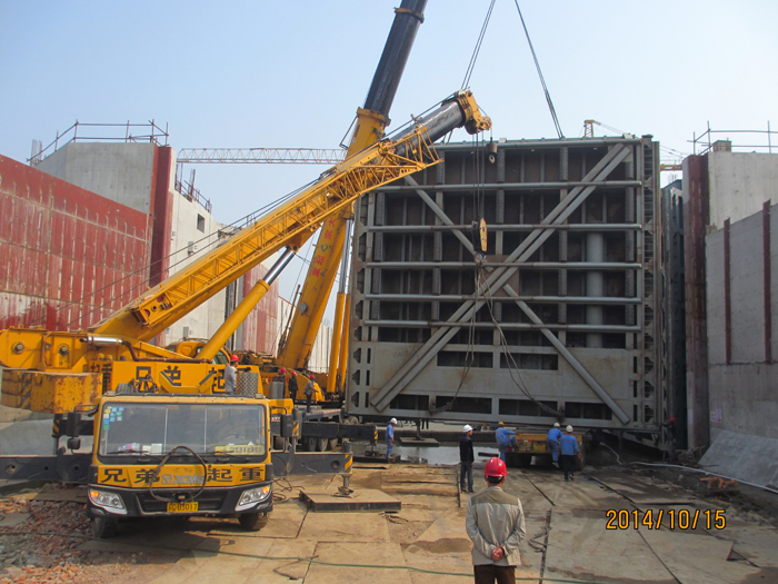 江蘇內(nèi)河船閘最大閘門成功吊裝