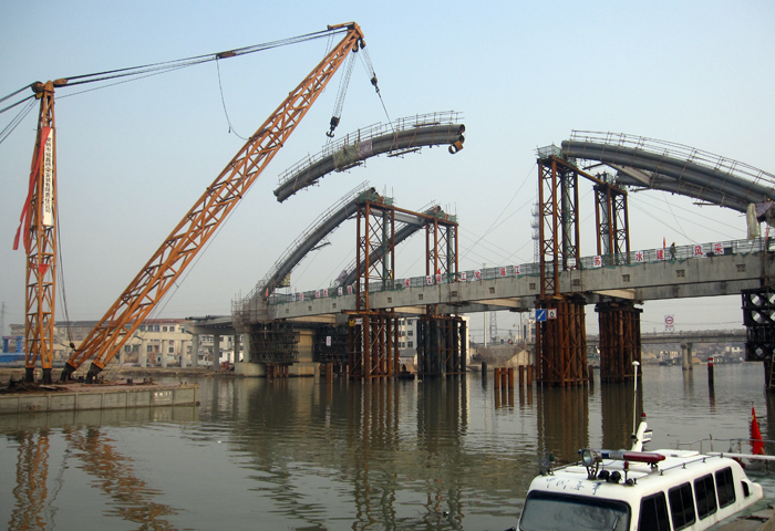 由我公司基礎工程分公司承建的南水北調泰州市鹵汀河拓浚跨河橋梁二標工程(港口公路橋),日前順利完成大橋主跨合龍。