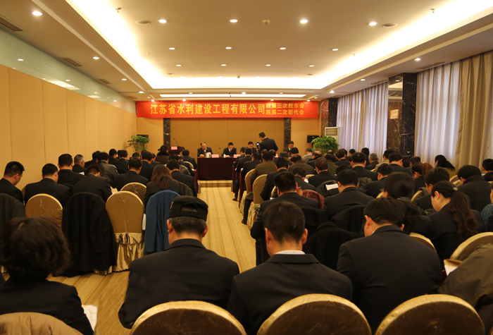 夏國春董事長在《工作報告》中對公司2014年工作做了總結,一年來,公司緊緊圍繞四屆二次股東會確定的工作思路,優化組織結構,完善管理機制,加強工程項目管理,大力開拓經營市場,較好地完成了各項生產經營任務。報告分析了公司所處的內外部經濟環境,要求大家面對經濟新常態,認真思考公司的發展方向和思路,布置落實2015年的各項工作任務。要立足推進科學發展,在完善管理機制、優化股本結構上下功夫;要增強公司所屬經濟體的自身造血功能,在做強專業、促進分(子)公司發展壯大上下功夫;要立足主打戰場,在開拓市場、優化經營布局上下功夫;要加強在手工程建設,在推進質量創優、安全標準化、效益提升上下功夫;要著眼提升管理能力,在加強成本控制、實施精細化管理上下功夫;要踐行以人為本的理念,在改進和完善分配制度、改革用工管理機制上下功夫。夏國春指出,面對新的挑戰和機遇,公司上下一定要團結一致,振奮精神,以昂揚的斗志、科學的謀劃、扎實的工作推進公司實現發展的新跨越,共筑江蘇水建夢!
