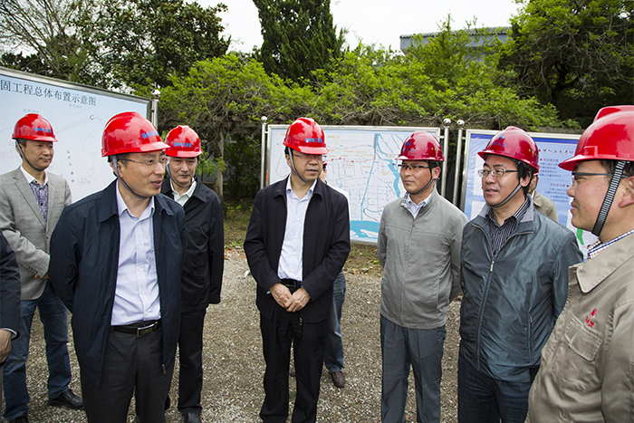 上午9時,劉玉年、葉健來到工地現(xiàn)場,詳細了解工程建設(shè)情況,并仔細察看工程質(zhì)量。他們對工程進展表示滿意,要求項目部在后續(xù)工程施工中,一要再接再厲,精心組織,抓好進度控制,確保5月底具備水下工程驗收條件,確保工程安全度汛;二要從嚴從細抓好安全管理,繼續(xù)保持安全、文明施工的良好氛圍,確保安全生產(chǎn);三要強化質(zhì)量控制,爭創(chuàng)精品工程。