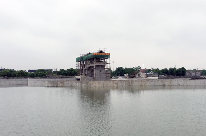 七浦塘拓浚整治工程西起陽澄湖,東至長江,經過相城區、昆山市、常熟市和太倉市,全長43.89公里,其中老河拓浚31.76公里,平地開河12.13公里,總投資32億元。江邊樞紐工程是七浦塘與長江交匯口的重要口門控制性建筑物,由已建節制閘、船閘和增建泵站三部分組成增建泵站工程由站身結構、進出水池、上下游翼墻、攔污清污結構、閘站隔堤、消力池及護底、護坡以及上下游引河等組成。選用4臺套開敞式立式軸流泵,均為引排結合的雙向泵,總裝機流量為120m3/s,單機流量30m3/s,每臺水泵配套1800Kw高壓同步電機。該工程于2014311開工建設,項目部緊緊圍繞2015530日實現通水的目標,倒排工期,攻堅克難,周密組織,精心施工,順利完成了通水前的各項施工任務,并順利通過了通水檢查驗收。