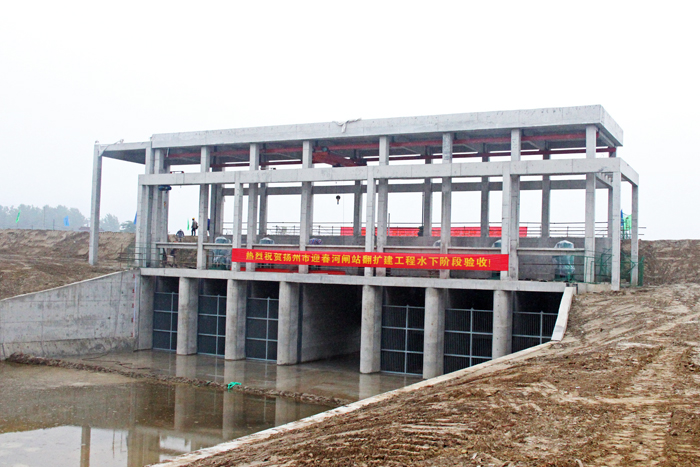 迎春河閘站是揚州市歸江河道以西區(qū)域廖家溝西堤上的穿堤建筑物(原名為霍橋套閘),與迎春河相接,地處北洲大圩北片區(qū)。主要建設內容為翻擴建迎春河閘站,采用一字式布置,中間布置1孔