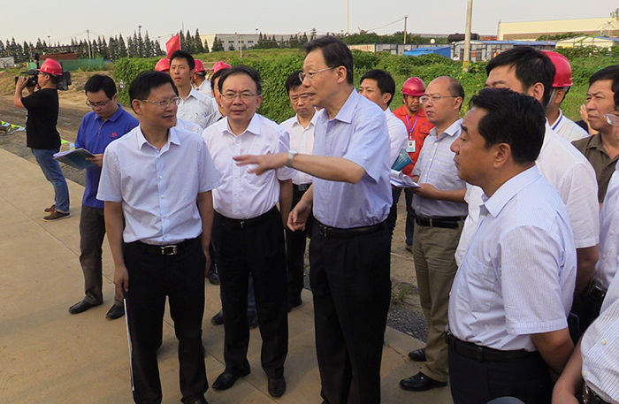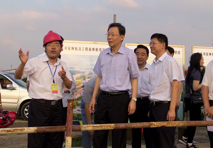在江邊樞紐工程施工現場,李學勇聽取了朱海生關于治太工程實施情況的匯報。新溝河延伸拓浚工程是繼已建成的走馬塘工程后正在實施的又一重點項目,工程于2013年9月開工建設,目前,全線征遷工作已基本完成,工程沿線5個樞紐全面實施。截至8月底,累計完成投資約35.5億元,占工程總投資的63%。新孟河工程正在抓緊前期工作,即將開工建設。李學勇對治太工程取得的進展十分欣慰,他希望廣大水利建設者加快建設進度,爭取明年基本完成新溝河工程,全力推進新孟河工程建設,早日發揮治太工程“三駕馬車”的效益。他還叮囑發展改革、財政等部門全力做好配合,在治太項目批復、資金安排等方面給予大力支持。