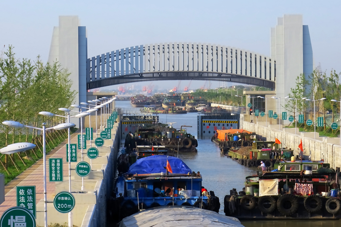 泰州引江河第二期工程高港樞紐二線船閘工程位于一線船閘西側(cè),為Ⅲ級(jí)船閘,船閘下閘首及下游引航道西堤為1級(jí)水工建筑物,船閘上閘首及閘室為2級(jí)水工建筑物,上游引航道為3級(jí)水工建筑物,臨時(shí)工程為5級(jí)水工建筑物。船閘閘室有效尺寸為230×23×
