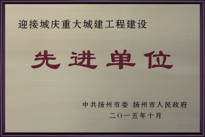 201510月,中共揚州市委、揚州市人民政府表彰了一批為迎接城慶重大城建工程建設作出特出貢獻的集體和個人,我公司因優質高效完成揚州閘加固工程建設任務,被評為迎接城慶重大城建工程建設“先進單位”。