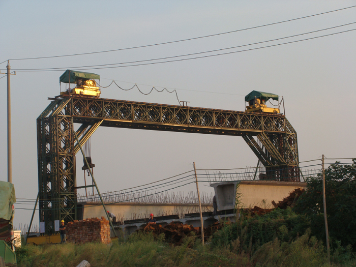 董潭生產(chǎn)橋?yàn)轭A(yù)制混凝土桁架結(jié)構(gòu),主跨