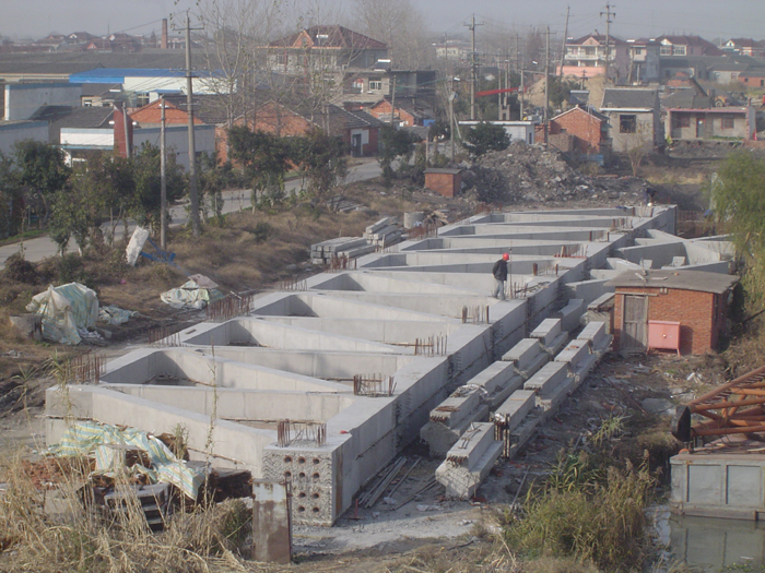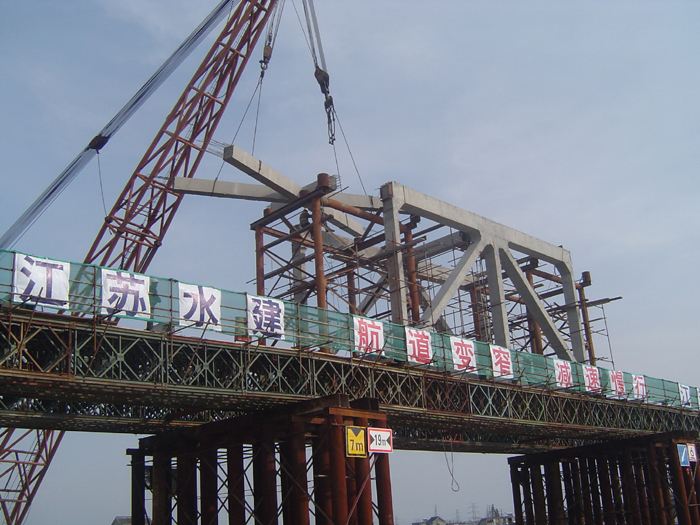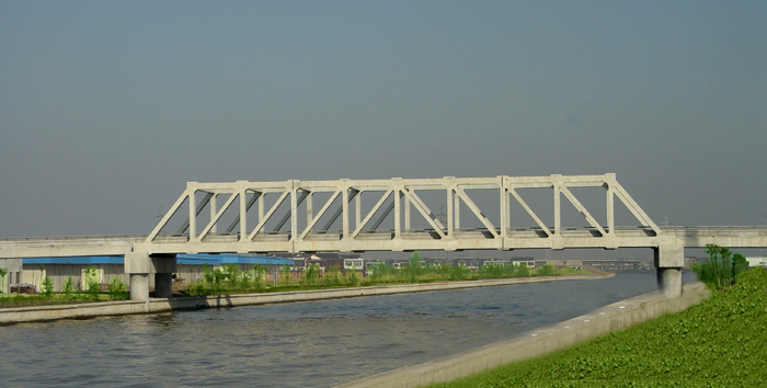 常熟新橋?yàn)轭A(yù)制混凝土桁架結(jié)構(gòu),主跨